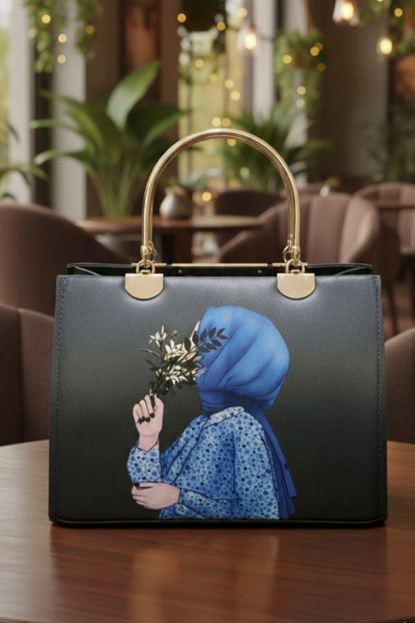 Add elegance to your everyday style with this handbag featuring a graceful hijab-inspired artistic illustration. Designed with sturdy top handles, a detachable strap, and ample space, it blends fashion with practicality—perfect for casual outings or formal occasions.